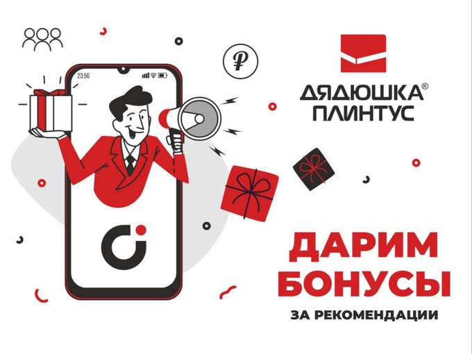 Рекомендуйте магазин отделочных материалов "Дядюшка Плинтус" и получайте бонусы за каждую покупку ваших друзей. Чем больше друзей присоединится — тем выше ваша выгода!